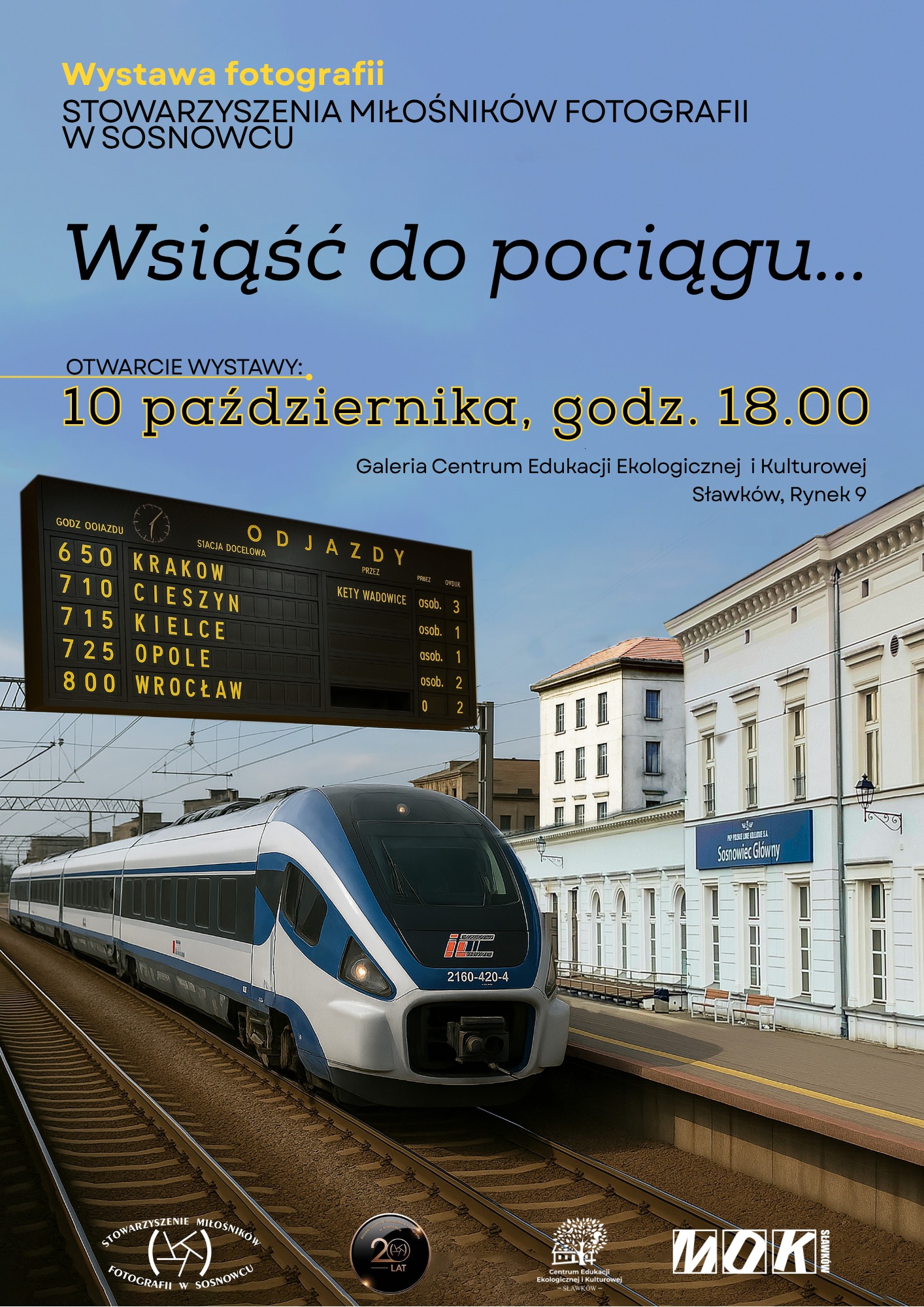 Już 10 października (piątek) o 18:00 zapraszamy do galerii Centrum Edukacji Ekologicznej i Kulturowej Sławków na wernisaż wyjątkowej wystawy Stowarzyszenia Miłośników Fotografii w Sosnowcu pt. „Wsiąść do pociągu…”.